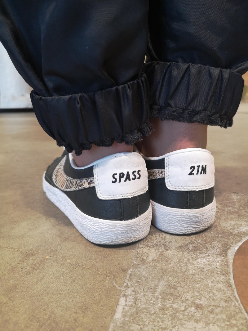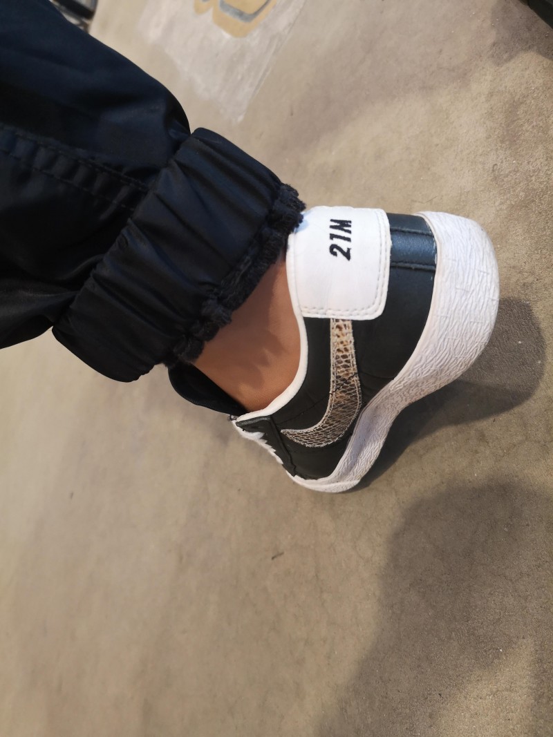 21M (ナイキ21マーサー店) 時代にカスタマイズして作ったという一足。パイソン柄のスウッシュがワイルドでBad (英語のスラングで"ヤバい"に近い意味)なんですが、全体的にシンプルに黒でまとまってるので、色っぽいですね。