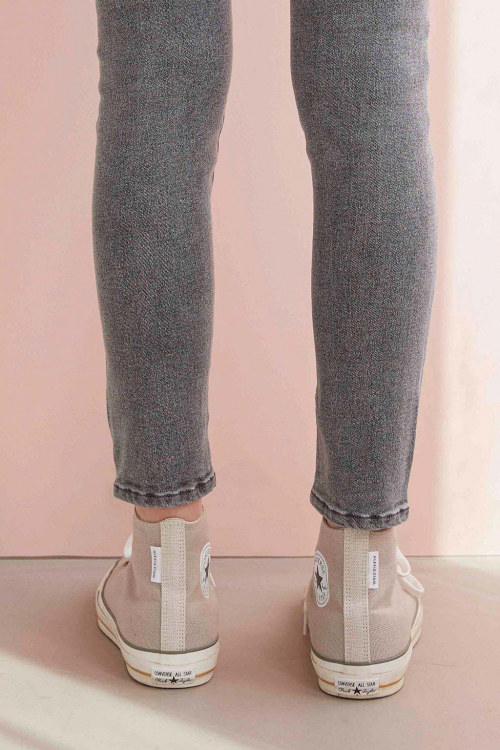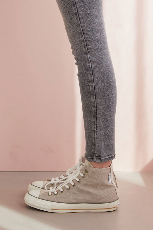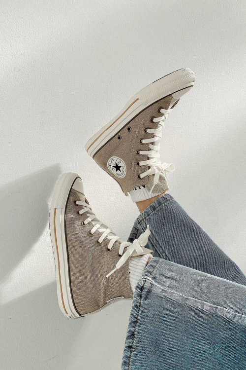 今回の新作コラボは不動の人気を誇る All Star (オールスター)をベースに、ヘンプ混素材を使った夏らしい一足になっています。