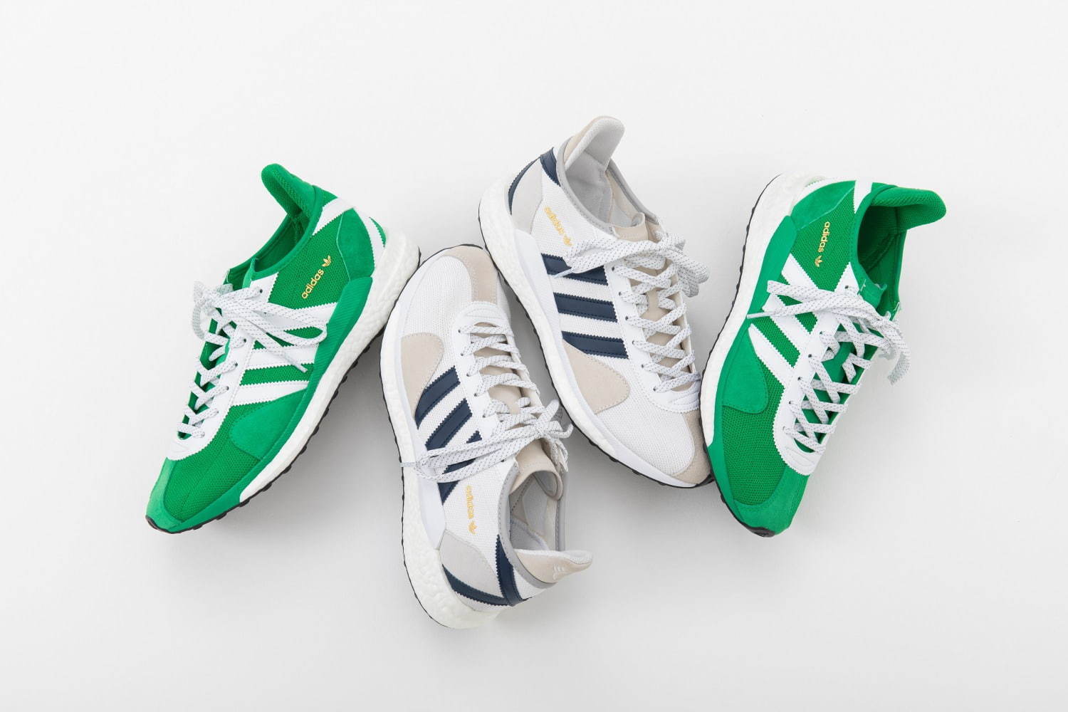 「FUTURE IS IN THE PAST」(未来は過去にある)をテーマに、アディダスのアーカイブモデルやランニングカルチャーから着想したシューズとウェアを展開。