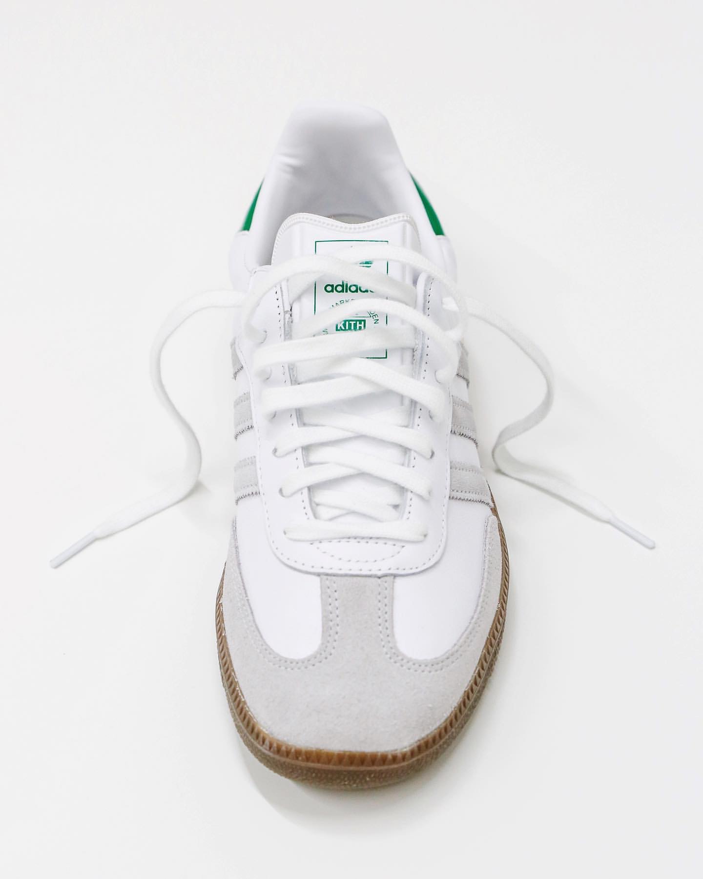 クリーンな印象のホワイトに、adidasブランドを象徴するグリーンとネイビーをアクセントに加えたミニマルな仕上がり。