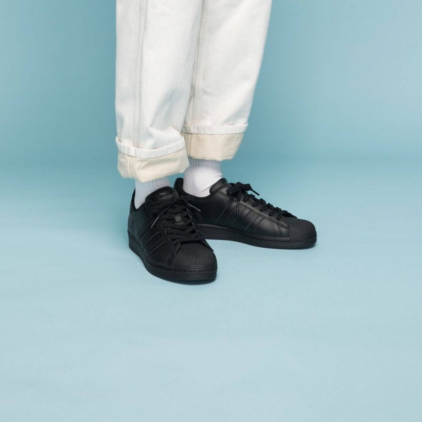adidas (アディダス)の定番ともいえるスーパースターですが、ブラックを選ぶと一気に高級感がアップして大人カジュアルにも最適。