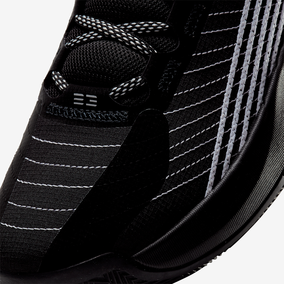ナイロン製のリップストップ素材を上品なヌバックヌバックでオーバーレイさせ、アッパーからソールまでブラックで統一されたミニマルな配色に異素材のアクセントを加えています。