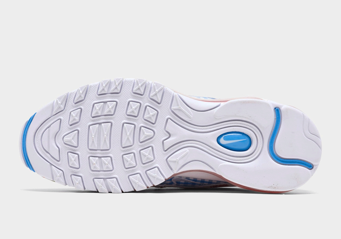 本作ではAir Max 97の波打つサイドレイヤーに、爽やかな印象を演出してくれる春夏にぴったりのギンガムチェックを落とし込むことで、GSモデルらしいかわいいデザインに仕上げられています。