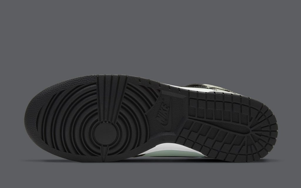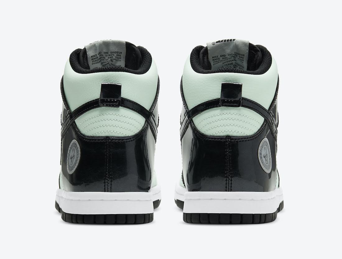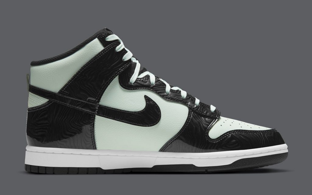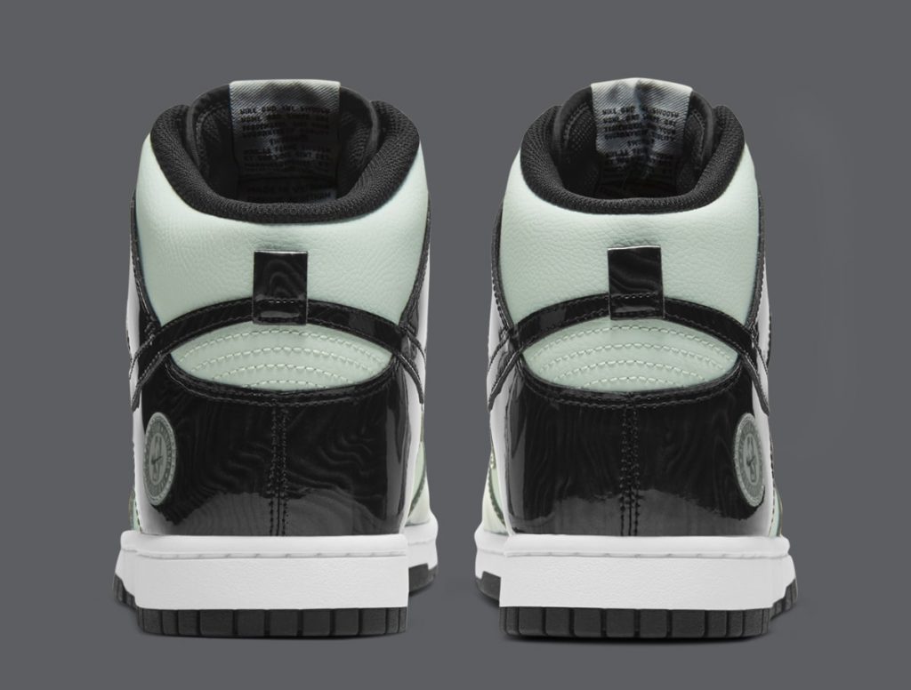 今回の新作はDunk High (ダンク ハイ)をベースに、ミントグリーンのレザーとブラックのパテントレザーを採用。