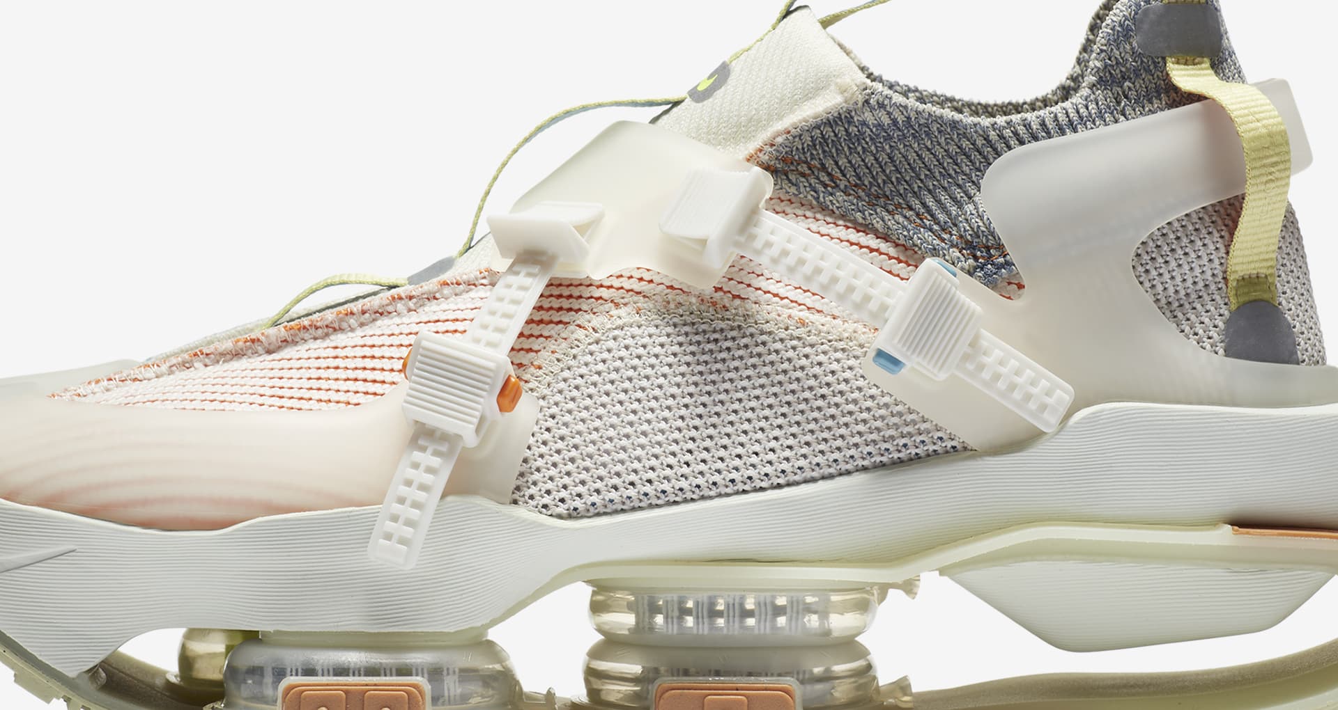 内側がくり抜かれたオープンフローティングヒールは、Nike Shox (ナイキ ショックス/シュー)からヒントを得たデザイン。