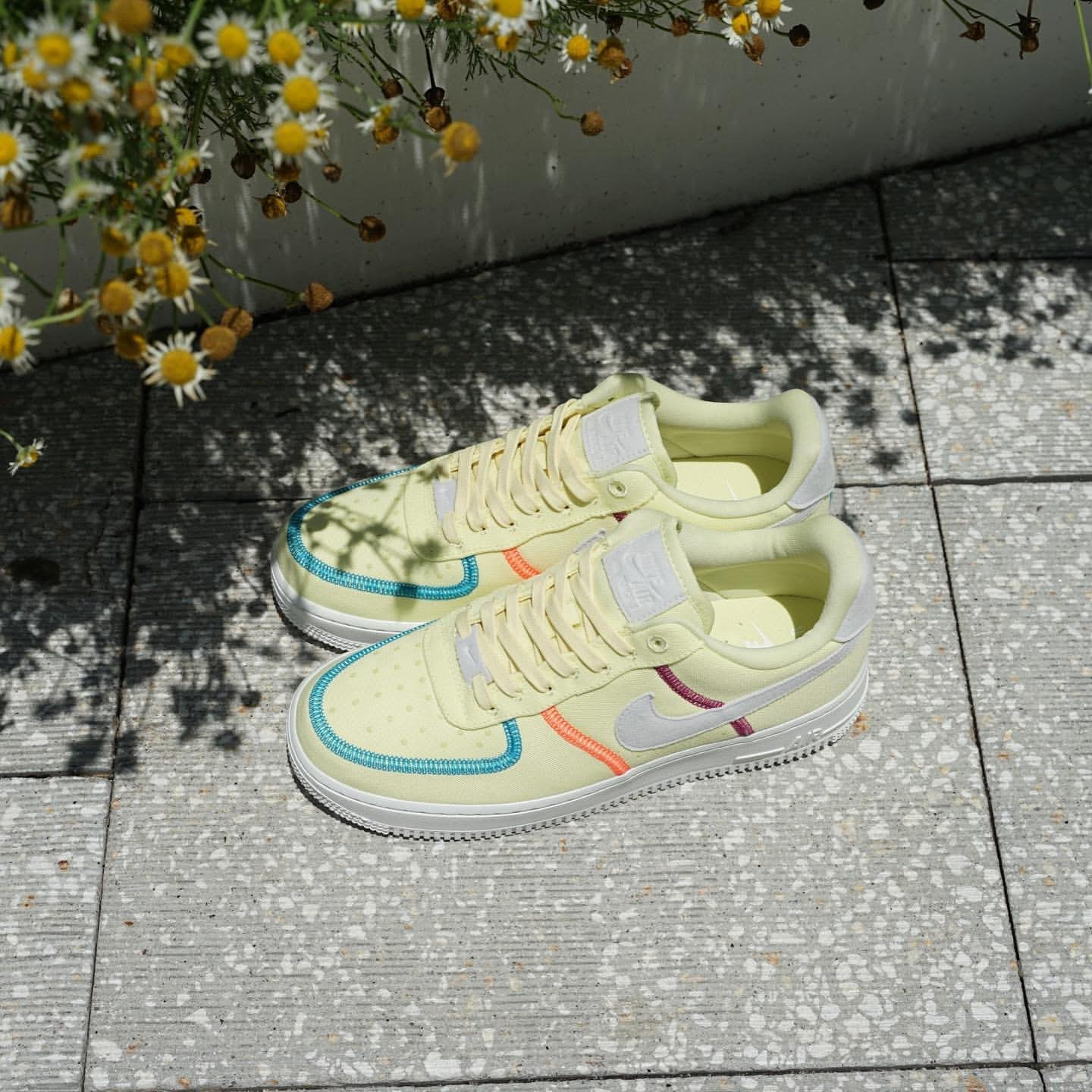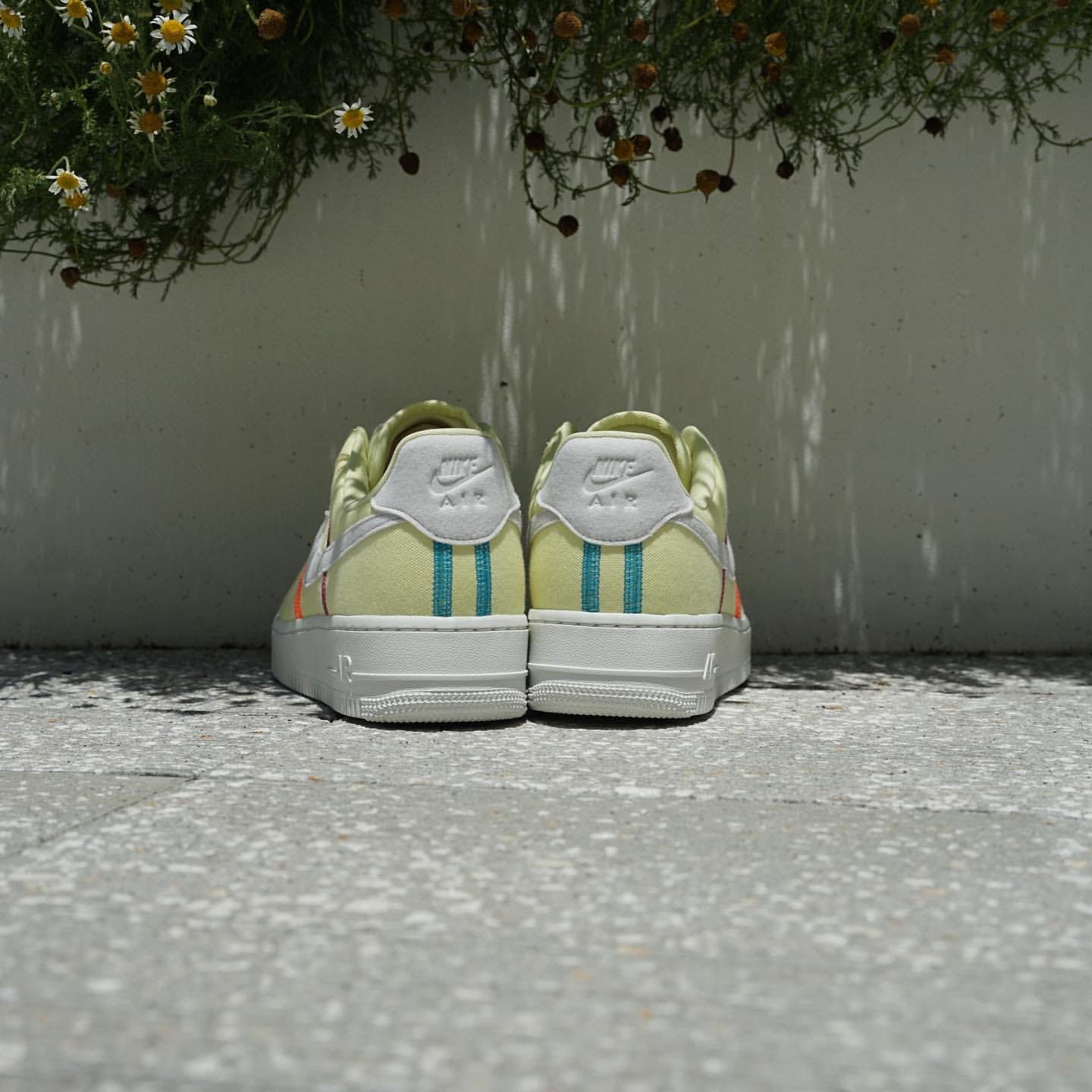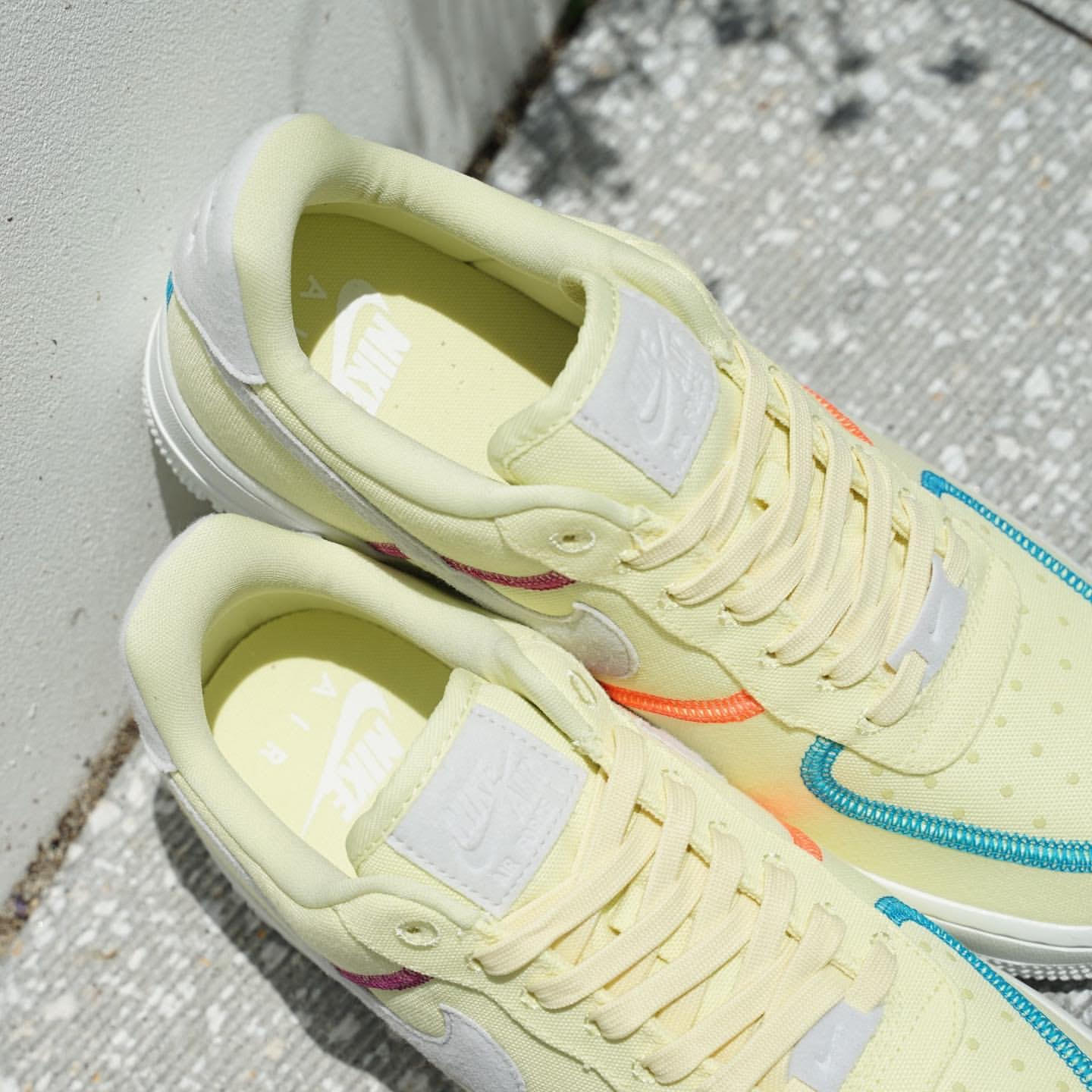 淡い色合いに鮮やかなラインが映え、Air Force 1のクラシカルで丸みのあるフォルムが際立つ絶妙なデザインです。