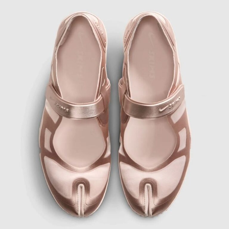 とくにサテン仕様は、エア リフト特有の足袋型フォルムに、光沢感のある素材を組み合わせることで、よりドレッシーで洗練された印象に仕上げられています。柔らかな質感と落ち着いたトーンが、スポーティーな構造の中にエレガントさを添えています。