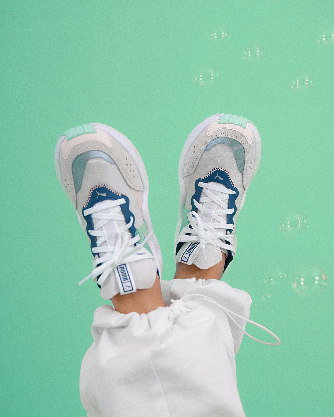 今回の新作は、Pumaのランニングシューズのデザインと最新テクノロジーを搭載したRSミッドソールを合わせて誕生しました。