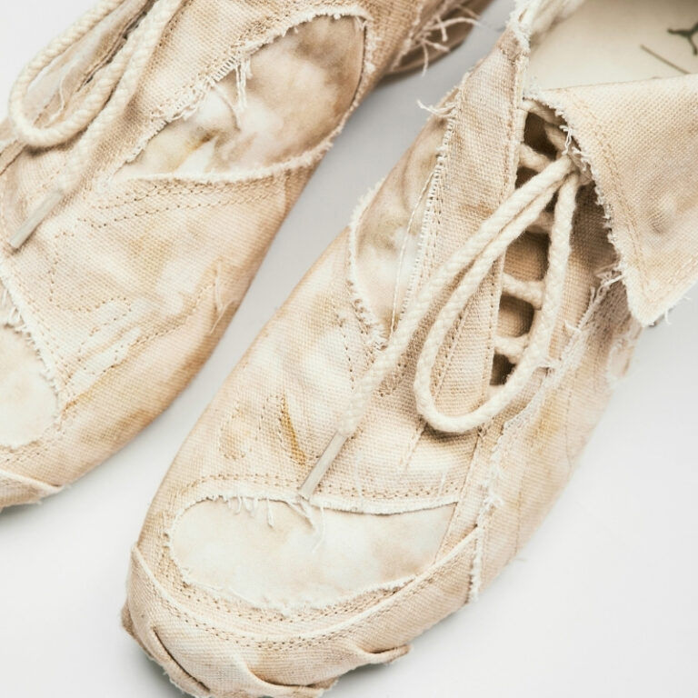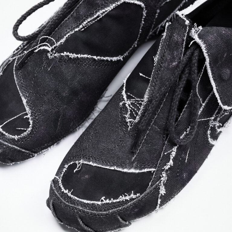 レイヤード構造や独自開発素材を採用することで、製造工程で生まれる偶発性も意図的にデザインへ反映。それぞれの一足は微細な個体差を持ち、着用を重ねることで履き手の痕跡を刻み込みながら、時間とともに独自の表情を形成していきます。