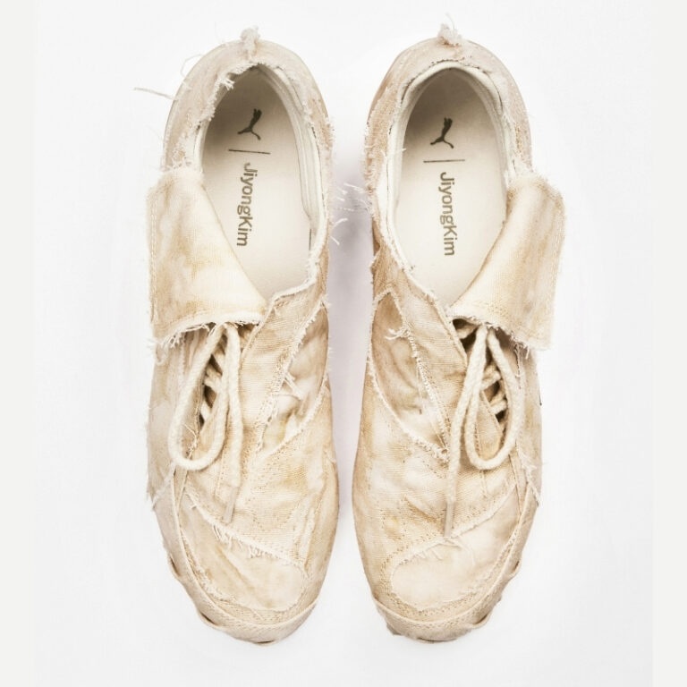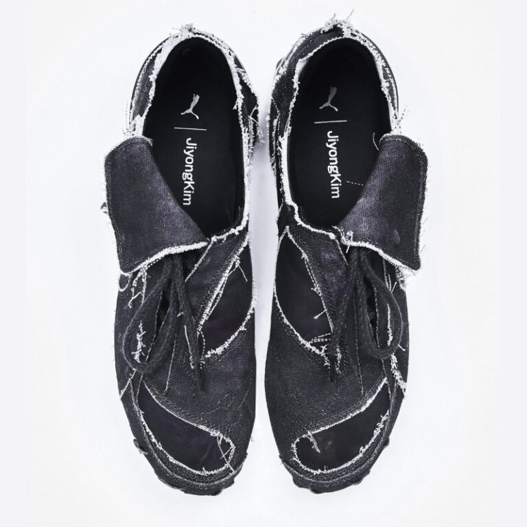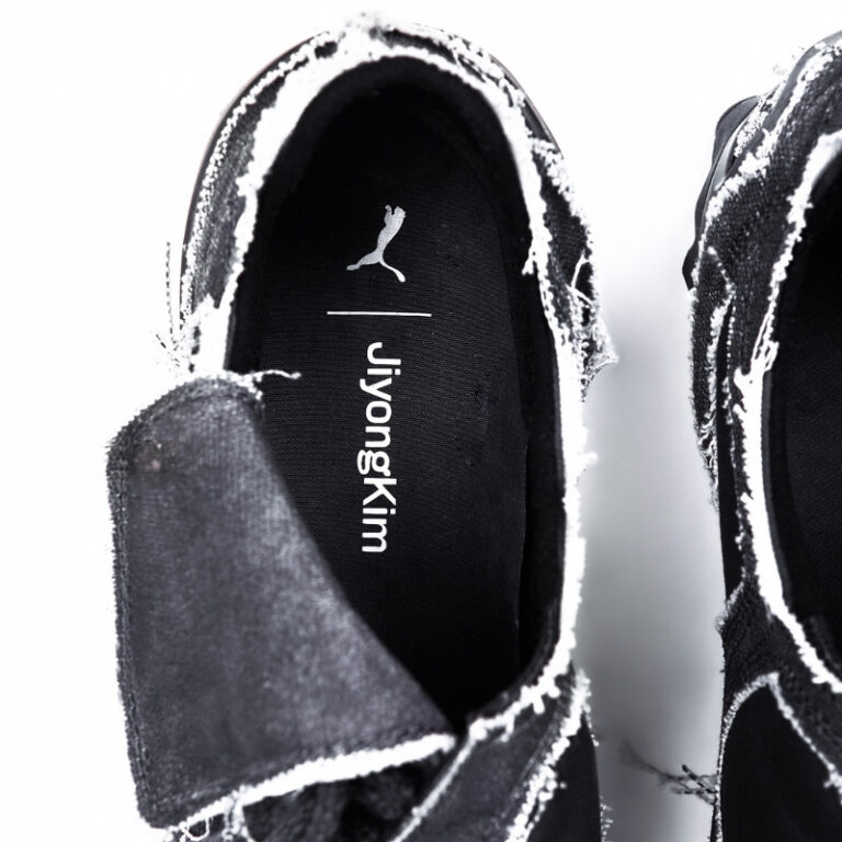 キャンバスアッパーには、あえて露出させたステッチとラフな仕上げを施し、素材感と構造美を強調。JiyongKim のシグネチャーである Sun-Bleach の手法がトーンの変化や表面表現に反映され、自然で不均一なシルエットを生み出しています。スナップボタン仕様のタンは甲部の安定性を高めながら全体のバランスを保つ設計とし、ライクラ素材を使用したインソールには、プーマと JiyongKim のブランディングロゴをプリントしています。カラーは、アイボリーとブラックの 2 色展開です。