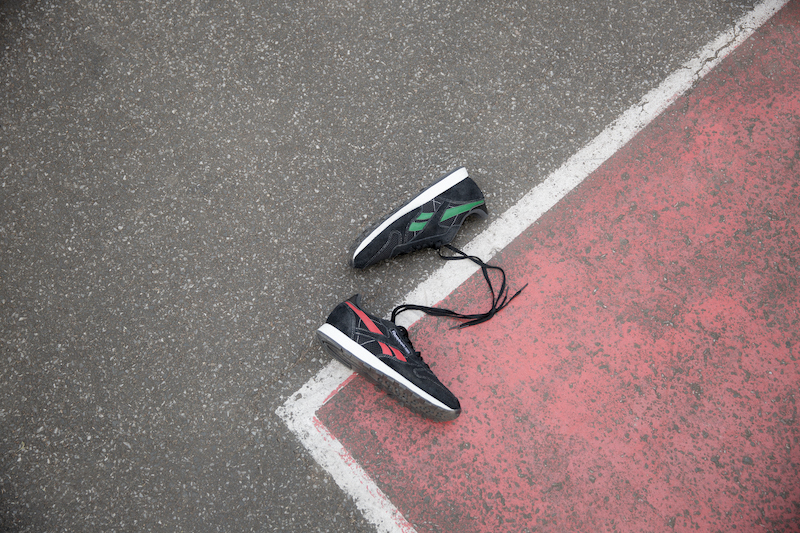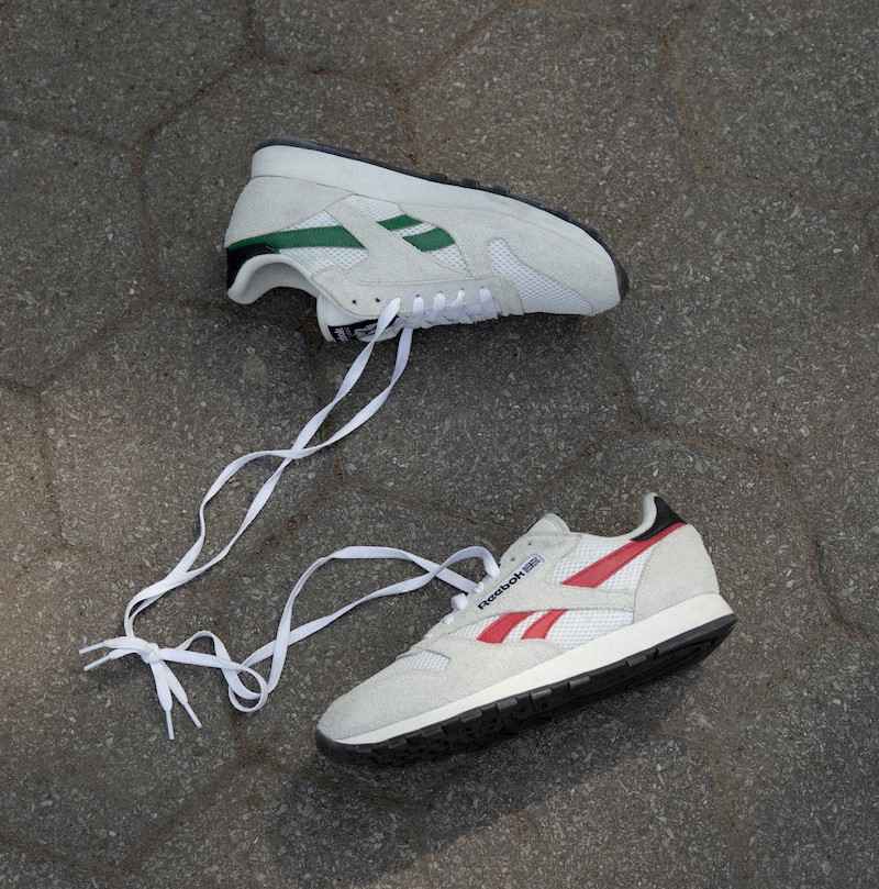 ブランドを代表する定番モデル CL Leather (クラシックレザー)とClub C (クラブ C)をベースに、レッドとグリーンの左右非対称のカラーリングが特徴的です。