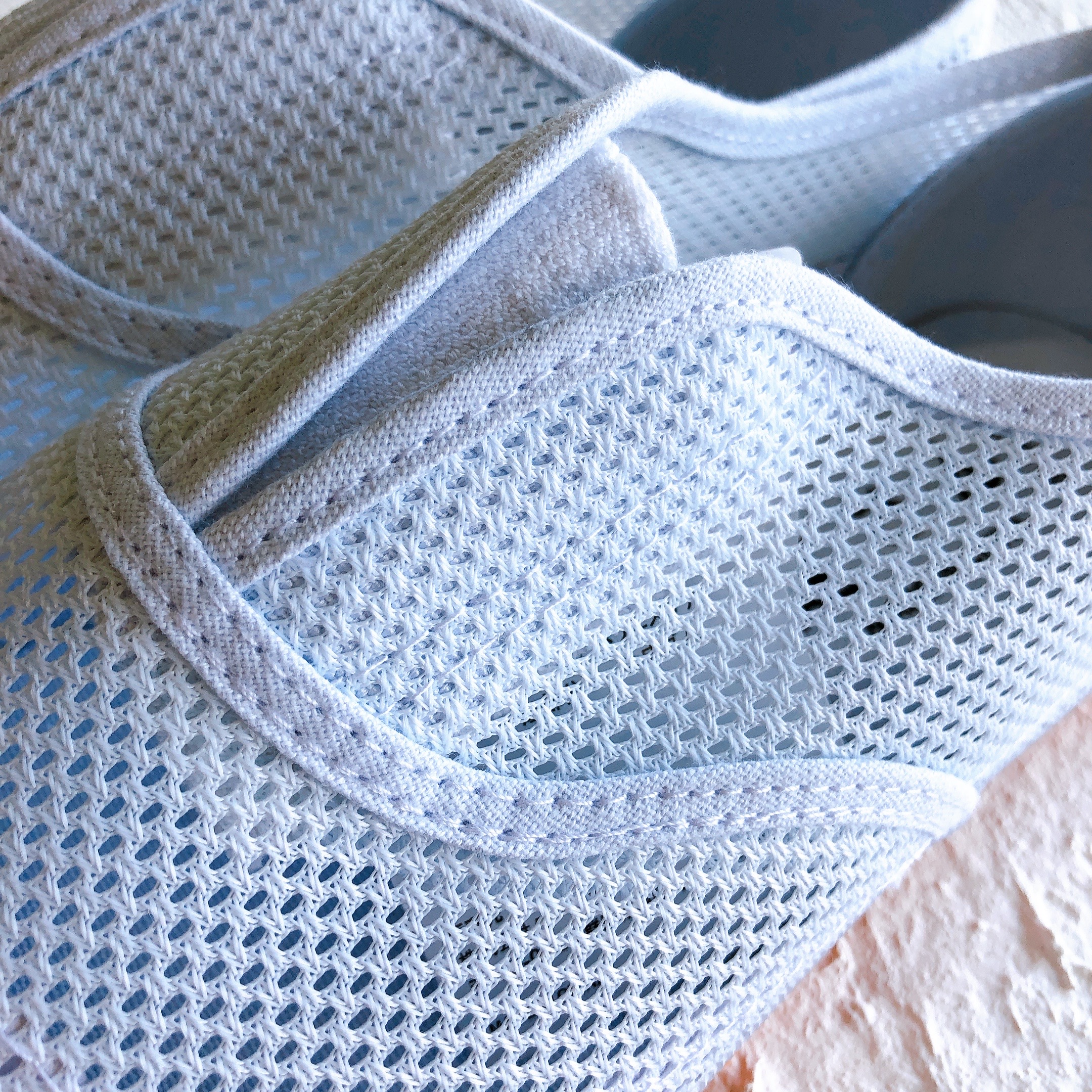 他の素材とは異なる柔らかく軽い肌触りと、どんな足にも優しく馴染むフィット感の高さが魅力。